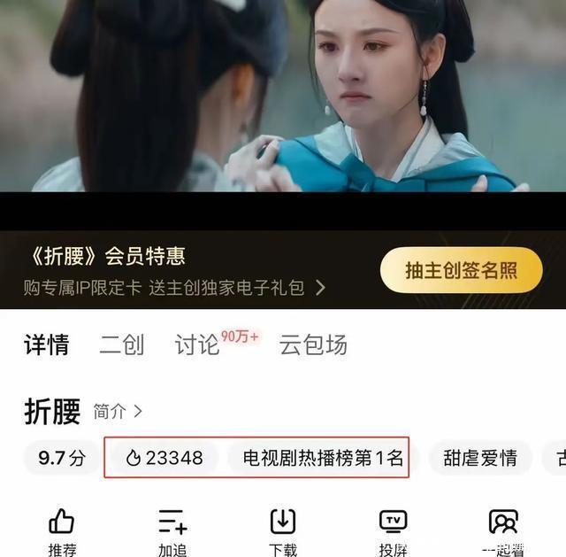 尤其是万众期待的古装偶像剧《折腰》在让剧粉苦等2年之后,突然在5月13日中午空降腾讯播出,一开播就冲到剧榜第一,热度迅速破了20000。半小时热度就突破23000。 粉丝粘性就此体现,开机到现在两年多了,观众对这部戏的兴趣只增不减,一看这个热度成绩就有一飞冲天的趋势。