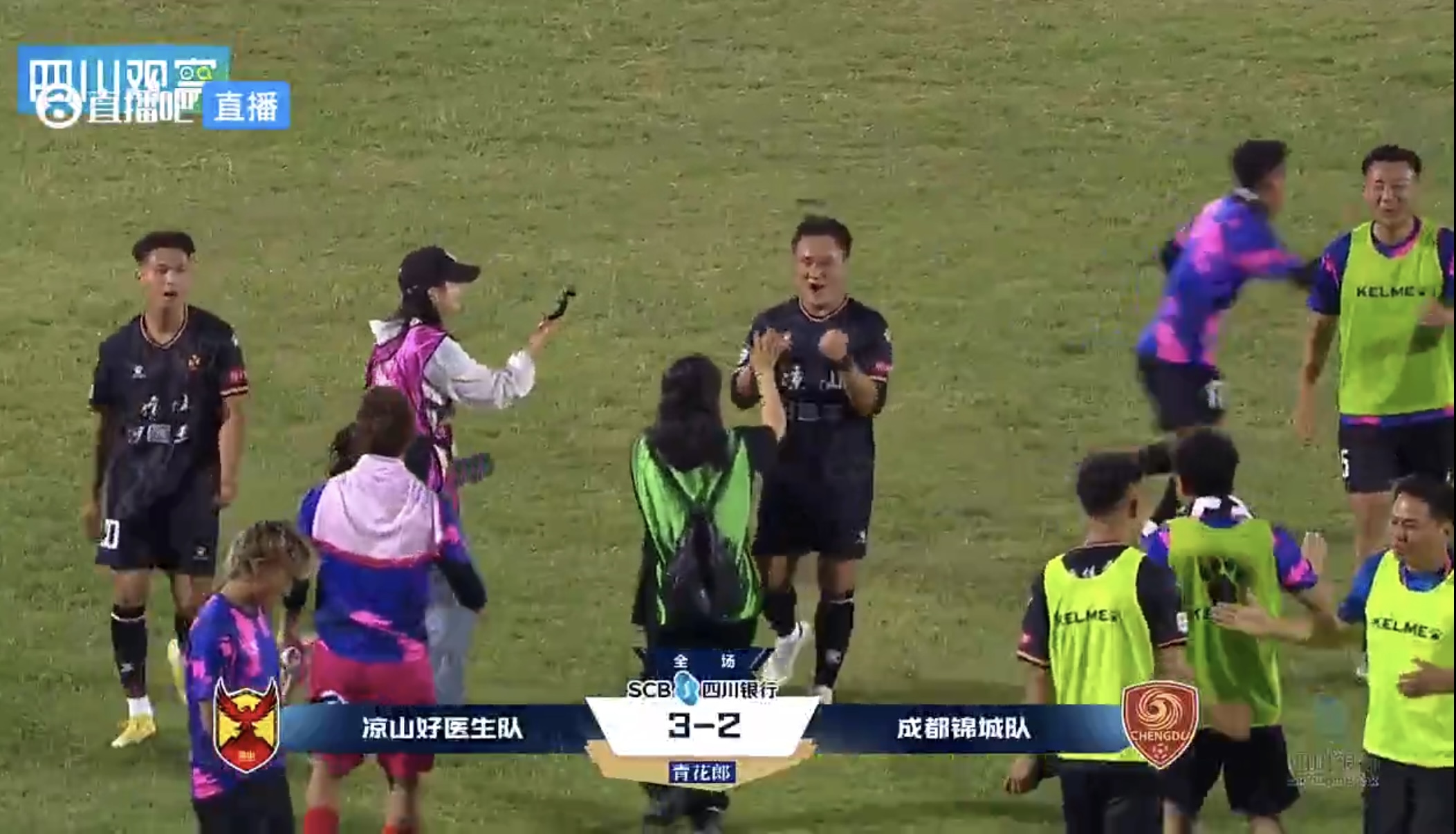 最终,凉山队3-2力克成都队,自川超联赛开赛以来,在20个地市州中率先实现了掀翻成都的壮举。终场哨响,凉山民族体育场全场凉山球迷高唱彝族祝酒歌,欢庆这场来之不易的胜利。
