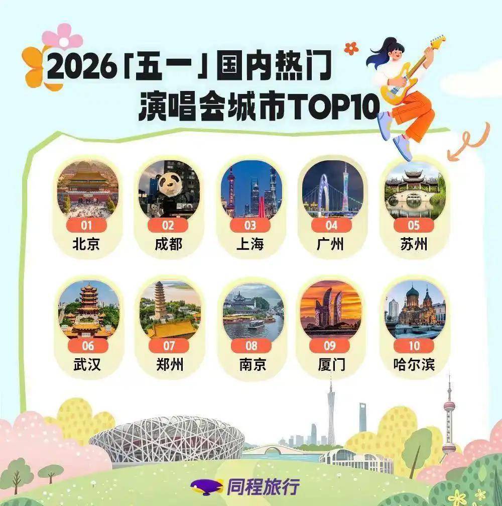与此同时,五一全国密集的演唱会排期,持续推动“为一首歌,赴一座城”的跨城观演热潮。同程旅行数据显示,北京、成都、上海、广州、苏州、武汉、郑州、南京、厦门、哈尔滨位列五一期间演唱会热门城市前十。